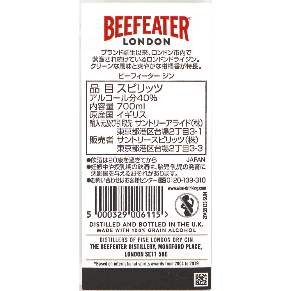 ビーフィーターは、1820年の創業以来変わらぬ秘伝のレシピを守り続け、今なお、ロンドン市内で蒸溜を行う唯一のロンドン・ドライ・ジンです。