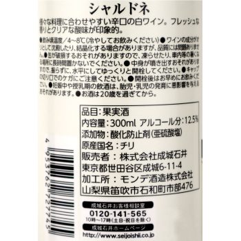 チリ産シャルドネ100%。料理に合わせやすいほどよい果実感の辛口白ワイン。