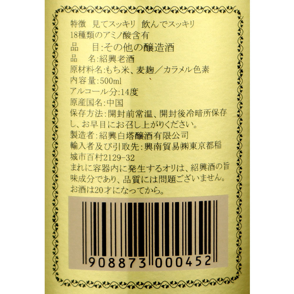 雑味のない今までの紹興酒にはなかったクリアータイプの紹興酒です。完全熟成したもち米の甘味とスッキリとした飲み口が特徴のプレミアム紹興酒。
